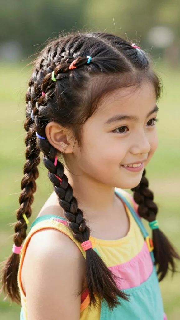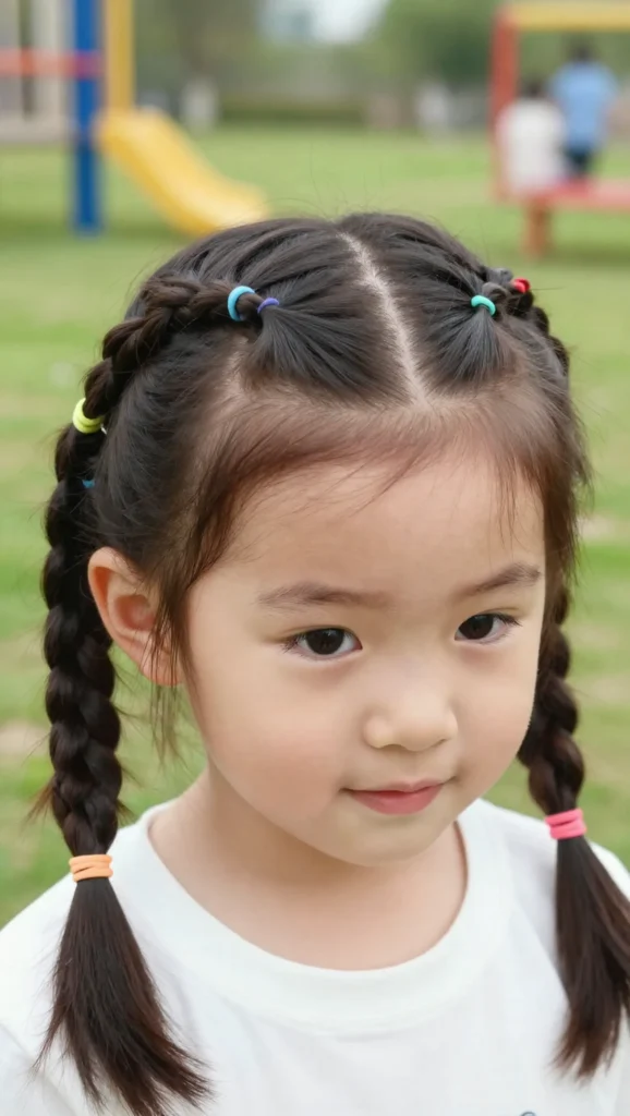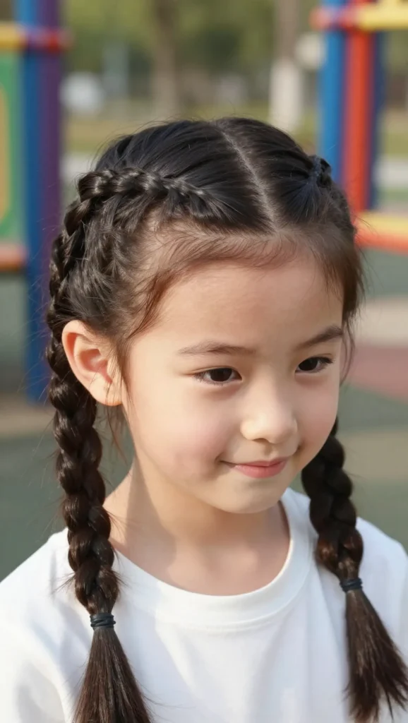 Braided pigtails add extra charm to traditional pigtails. This style is playful, comfortable, and easy to maintain. It’s a favorite among younger kids and works well for school and daycare.