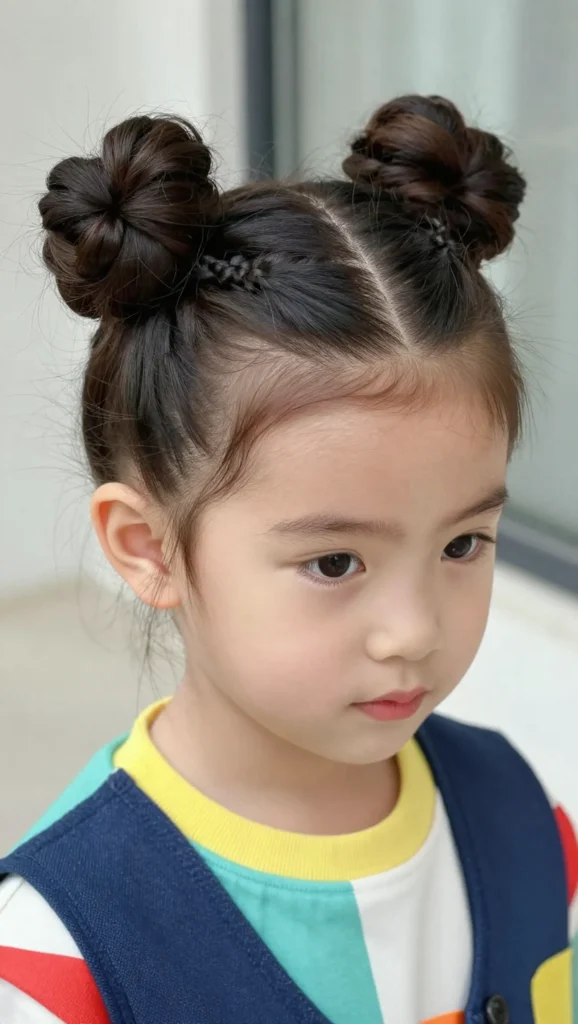 This fun hairstyle combines braids with two small buns. It’s trendy, playful, and perfect for parties or weekend outings. This look adds personality while keeping hair secure.