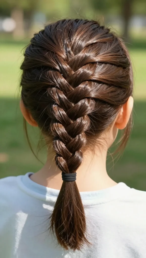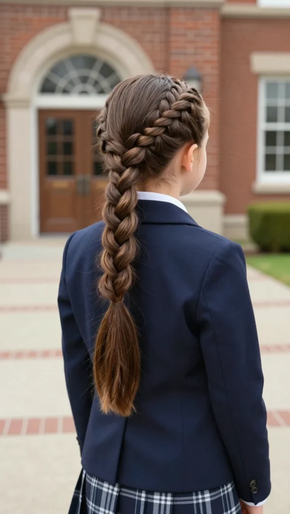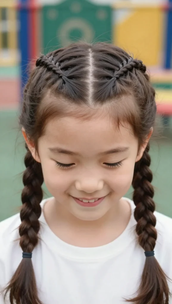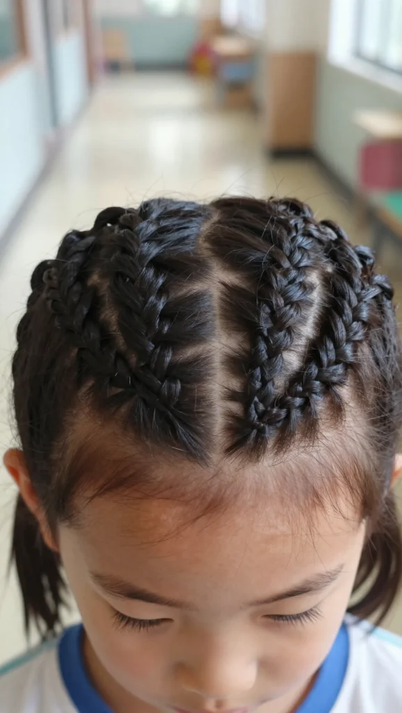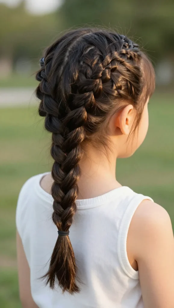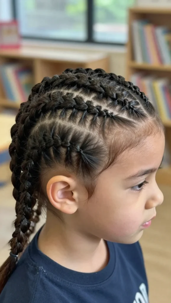 This style combines a French braid at the top with a ponytail at the back. It keeps hair neat while still allowing movement. It’s a great choice for kids who like ponytails but need something more secure.