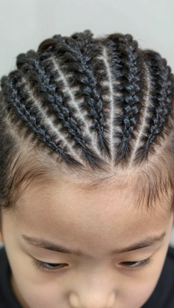 Boxer braids are tight, clean braids that start at the front of the head and run toward the back. They are ideal for busy school days or dance practice. Parents love how long they last, and kids love the sporty, cool vibe.