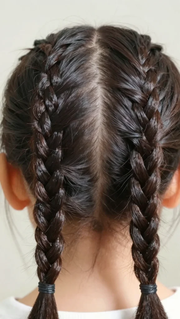 Dutch braids sit on top of the hair instead of blending in, giving a raised and defined look. Double Dutch braids are great for active kids because they stay secure even during sports or outdoor play. This is one of the most practical cute braid hairstyles for kids.