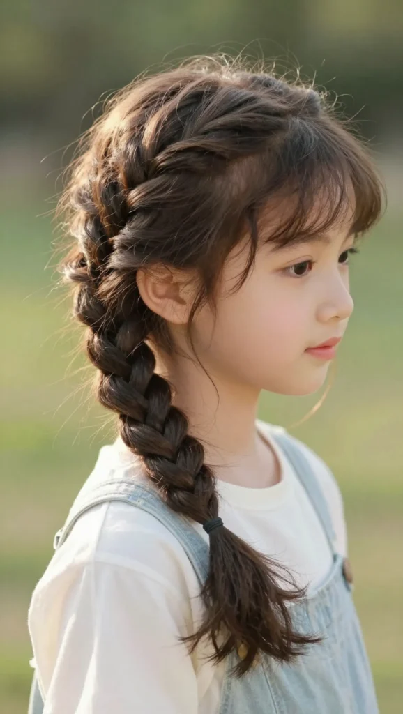 A side braid offers a soft, relaxed look that works well for casual outings. It’s quick to style and perfect for kids who don’t like tight hairstyles. This braid looks especially cute with loose strands framing the face.