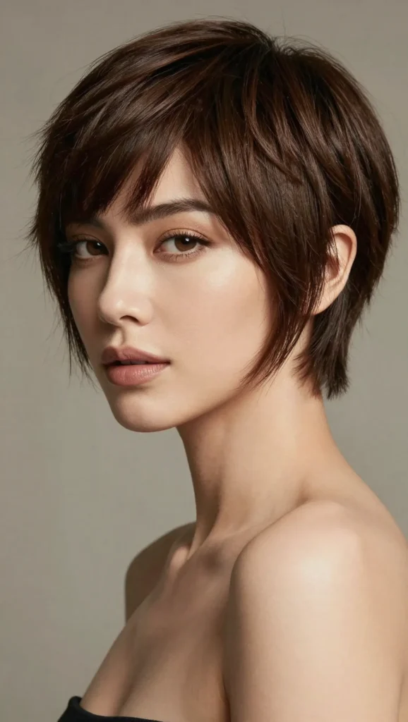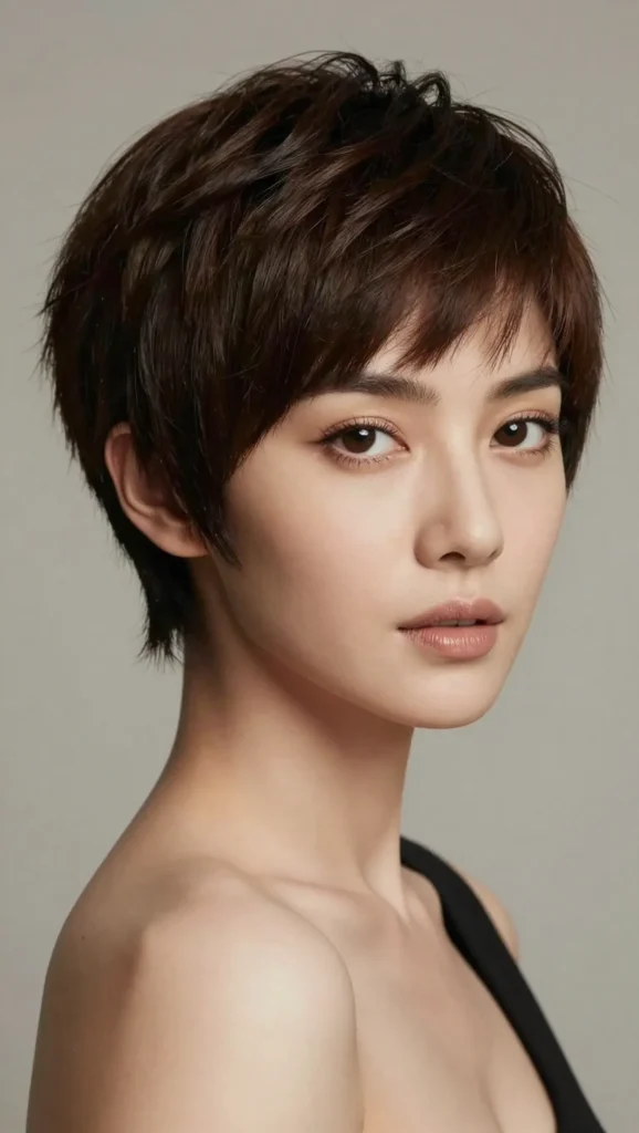 An asymmetrical pixie adds interest and dimension. One side is longer than the other, creating a modern and stylish appearance.