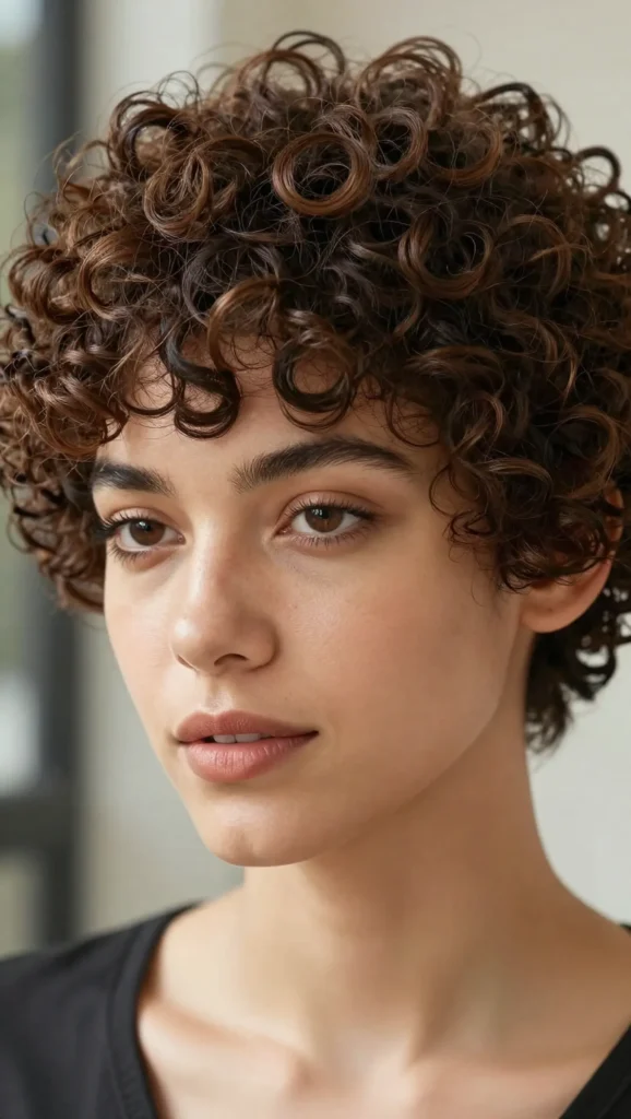 If your thick hair is naturally curly, a curly pixie can look stunning. Layers help define curls while removing heaviness.