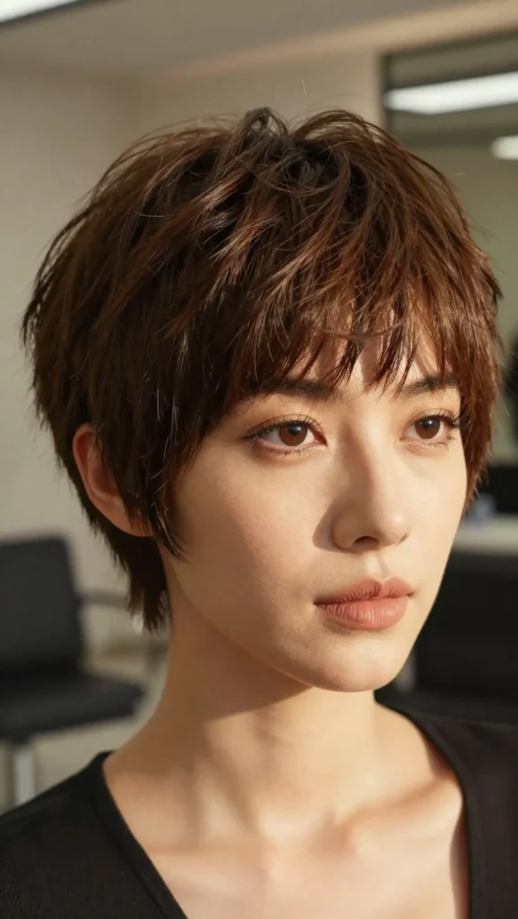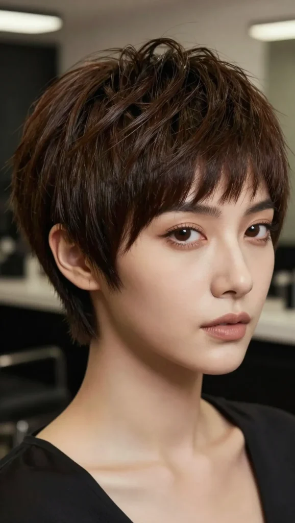 A shaggy pixie is perfect for thick hair because it adds layers and removes bulk. The messy texture gives a relaxed and trendy vibe.