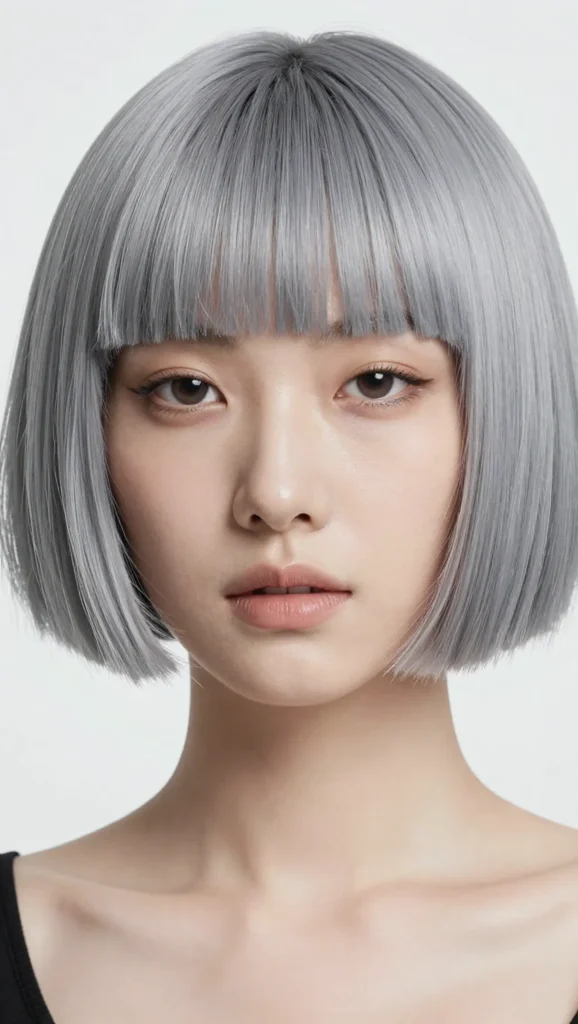 An icy gray shade paired with a bob haircut creates a sharp, modern look that’s both stylish and easy to maintain.