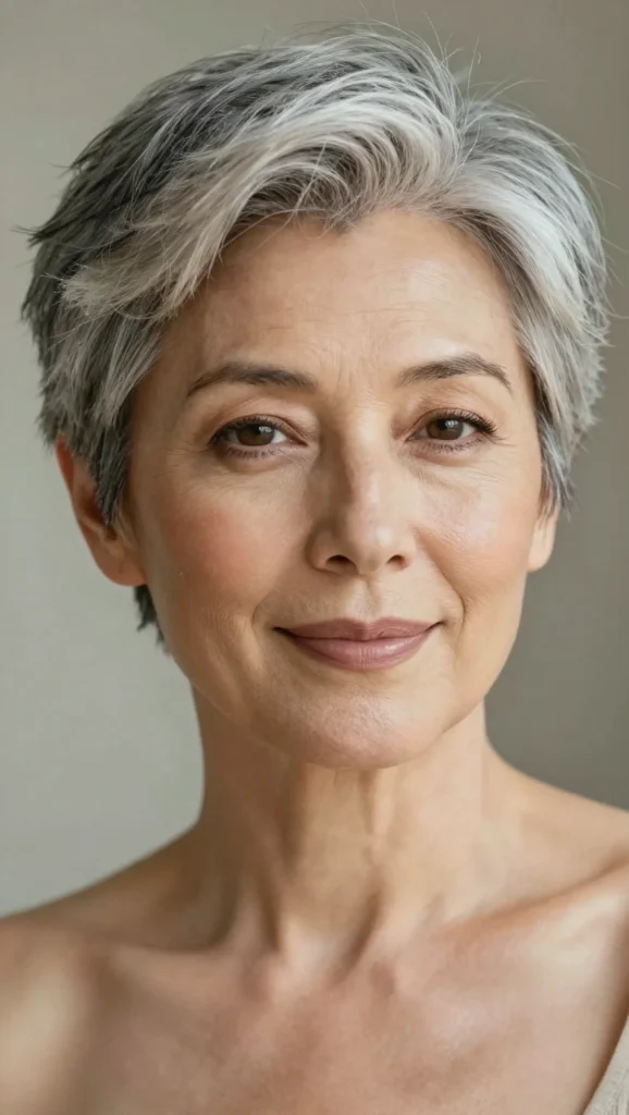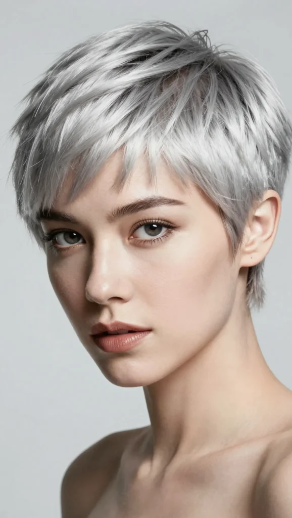 A pixie cut in a silver shade is both bold and stylish. It’s easy to manage and highlights facial features beautifully.