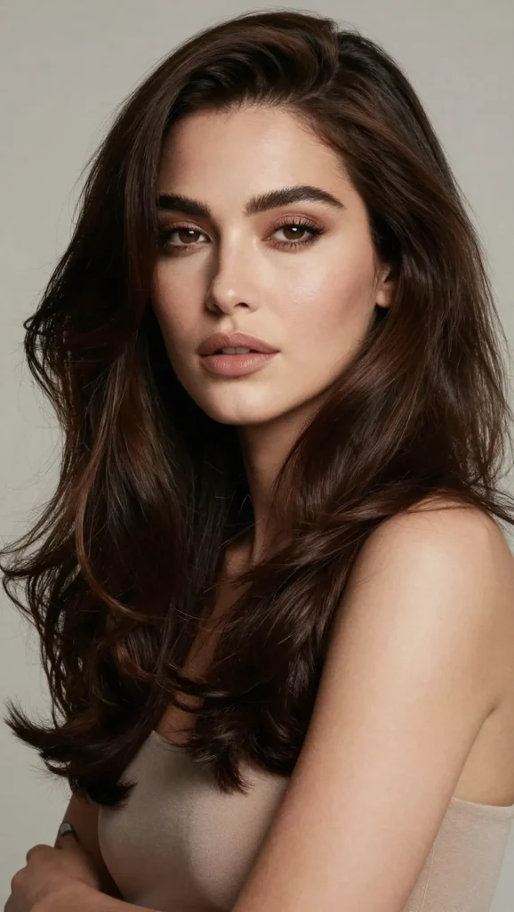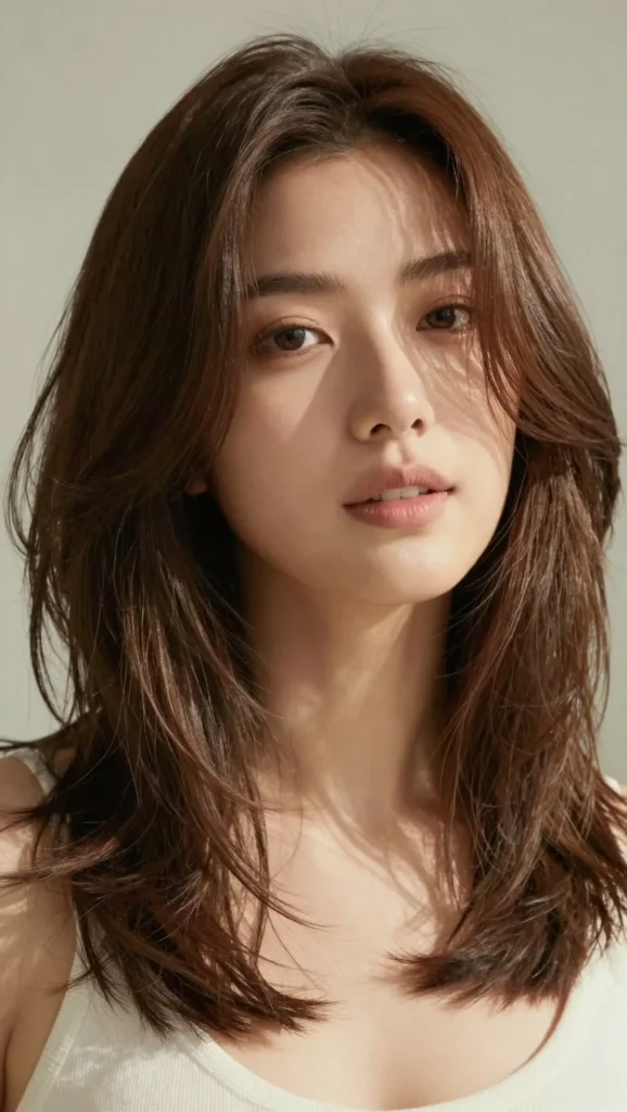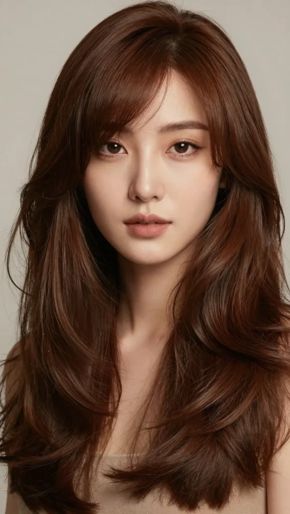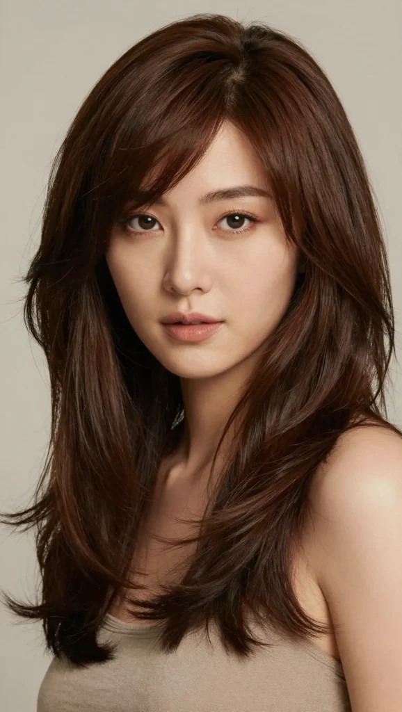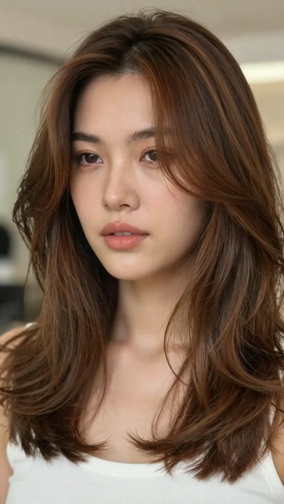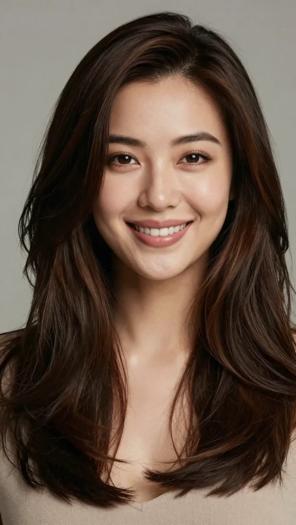 Long layers help elongate the face shape while keeping the hairstyle soft and elegant. This cut works beautifully with straight, wavy, or lightly curled hair.