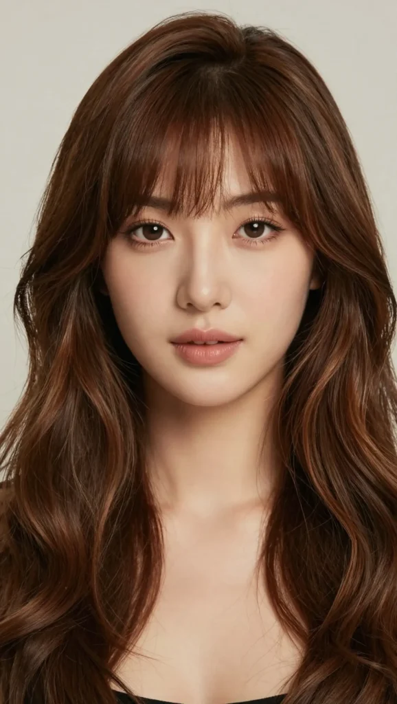 When paired with long hair, curtain bangs create soft vertical lines that balance fuller cheeks.