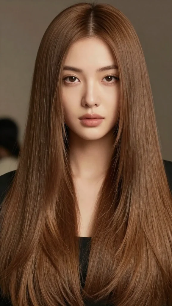 Long straight hair with subtle layers can be incredibly flattering for round faces. The length naturally elongates the face, while layers prevent the style from looking flat.