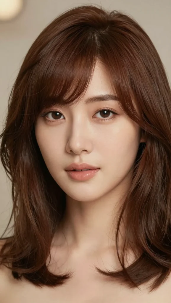 Side-swept bangs instantly add angles to a round face. Unlike blunt bangs that emphasize width, side bangs break up the symmetry and create a slimming effect.