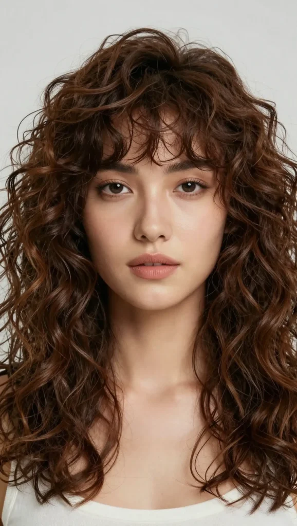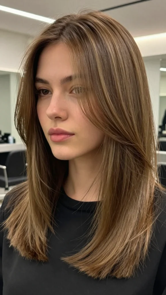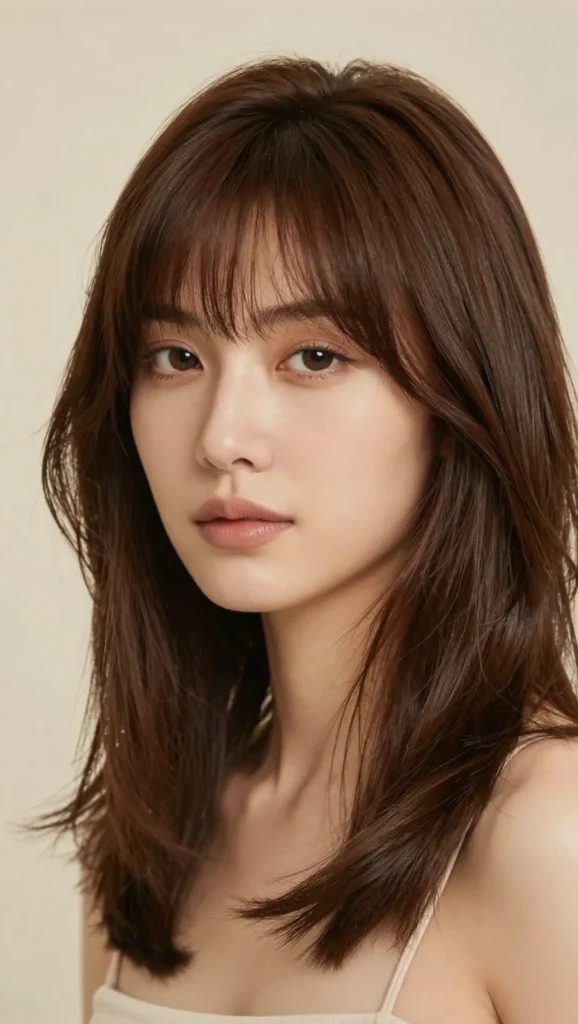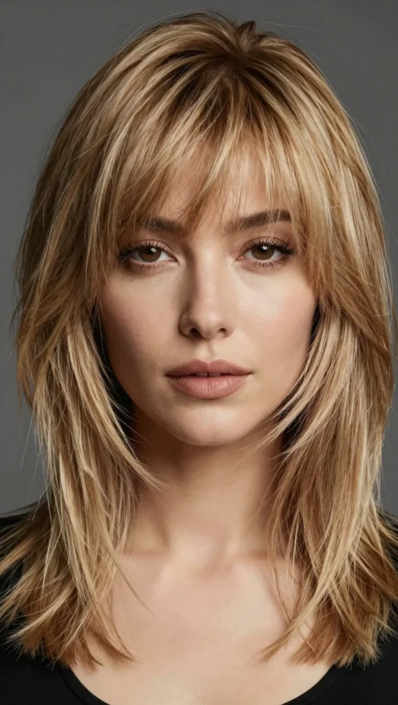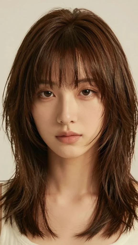 When paired with medium-length layers, curtain bangs create balance and dimension. This style works well whether your hair is straight, wavy, or slightly curly.