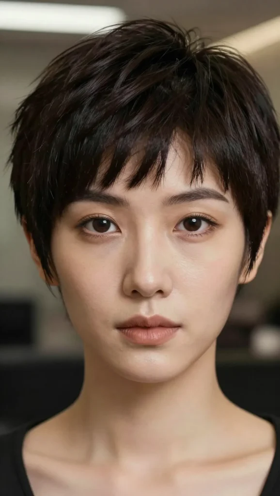 Short hair can also work beautifully with square face shapes. A layered pixie cut adds volume at the crown and softness around the face.