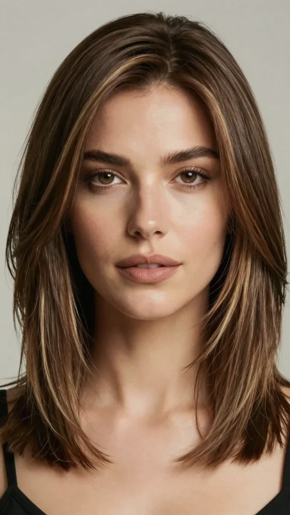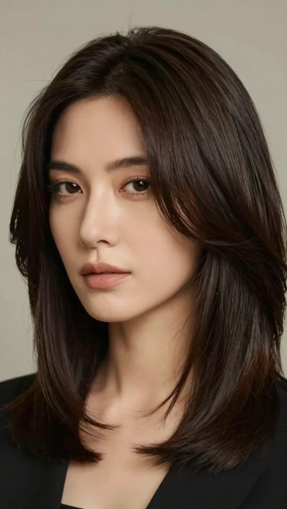 A shoulder-length cut with gentle layers and a side part is both elegant and easy to maintain.