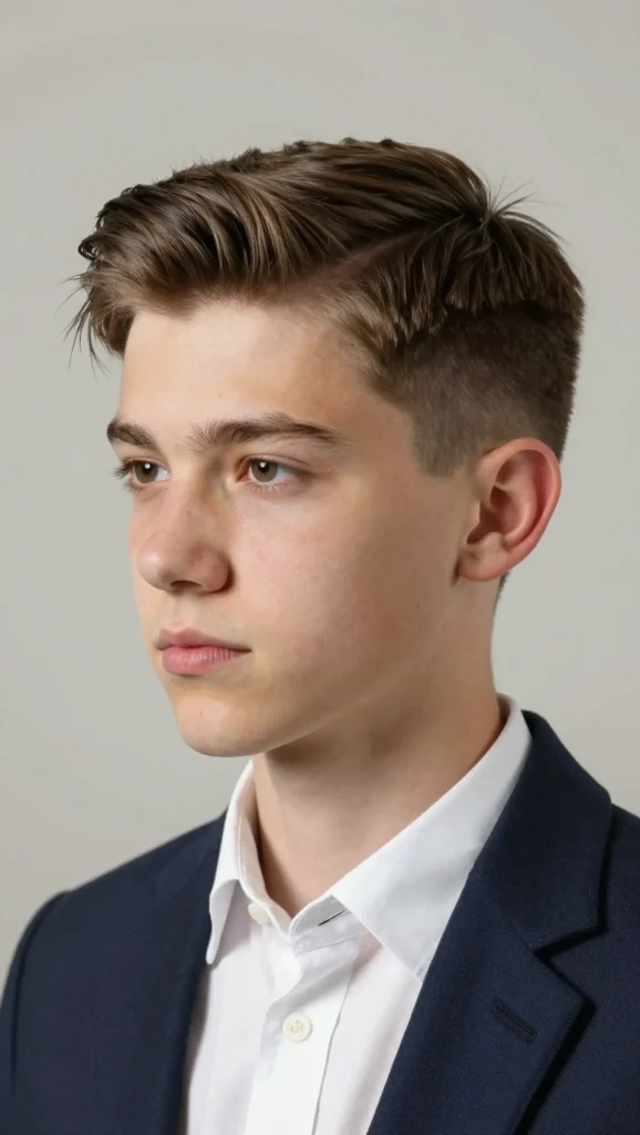 This haircut gives teen boys a confident and modern appearance, making it suitable for both casual and formal occasions.