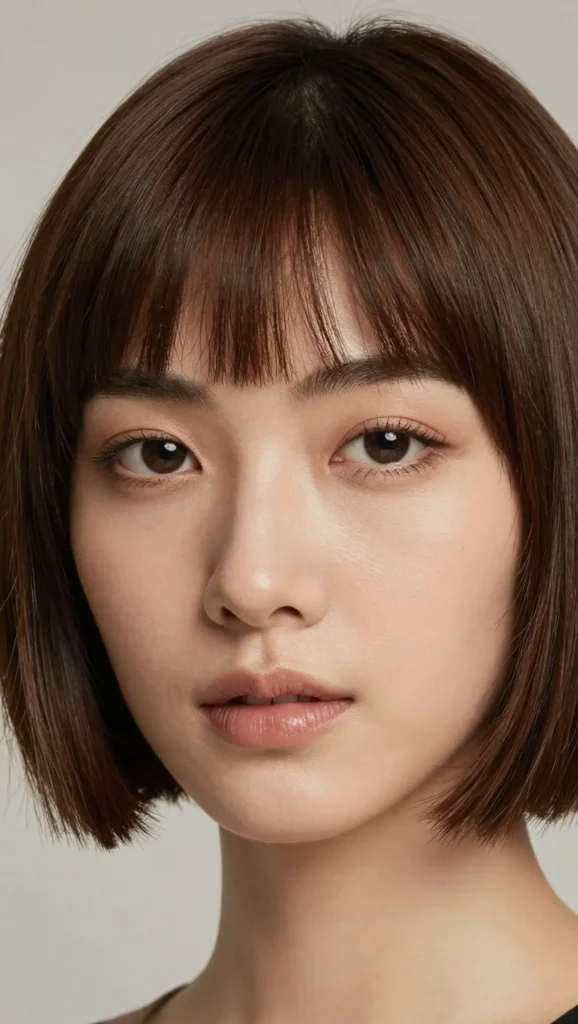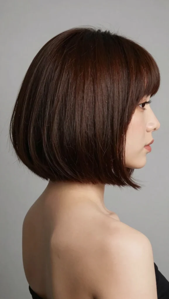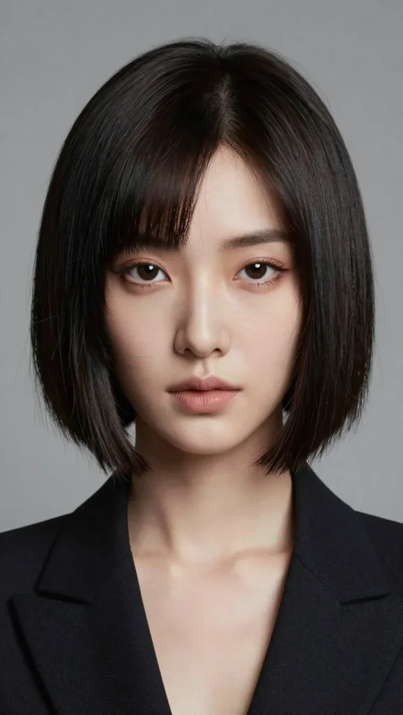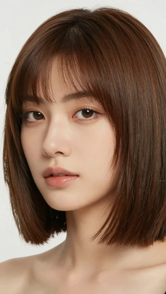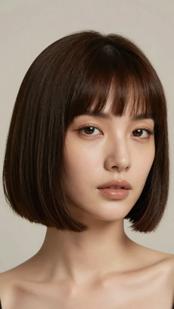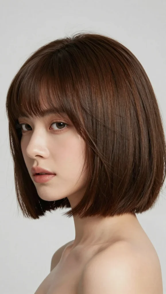 A slightly shorter bob paired with subtle fringe for a chic finish.