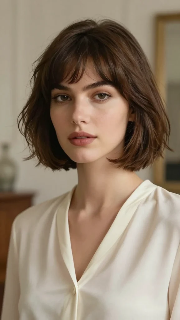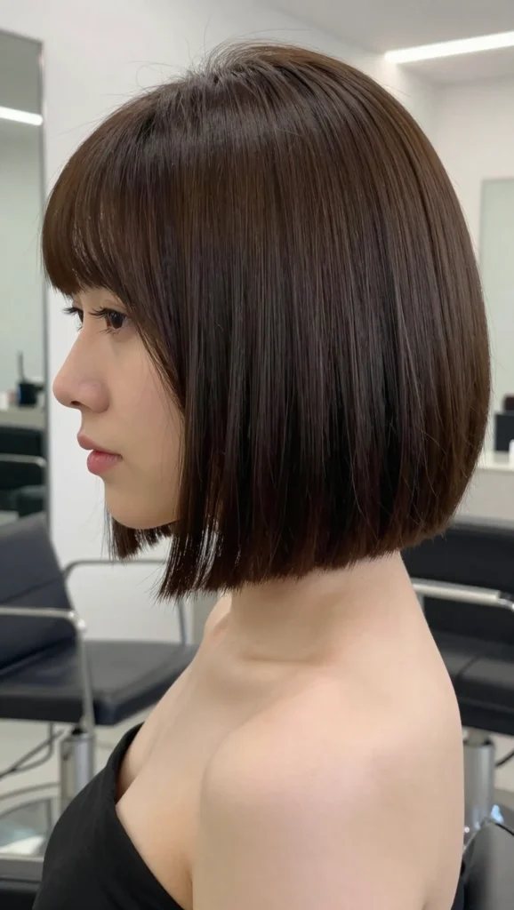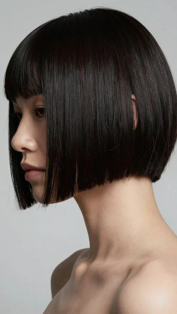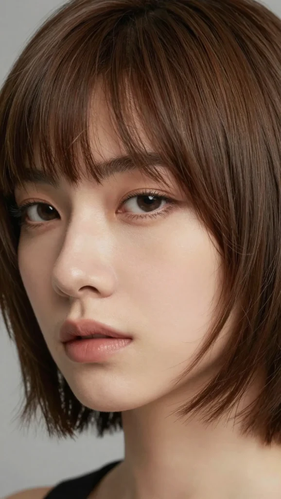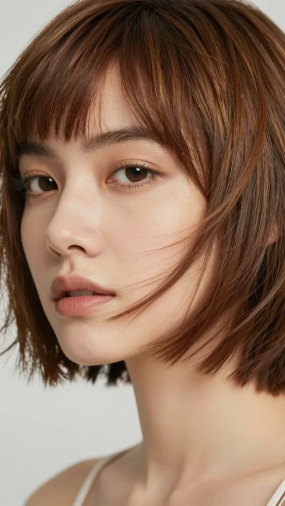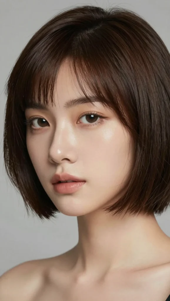 A slightly shorter bob paired with subtle fringe for a chic finish.