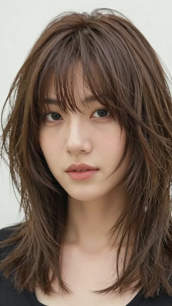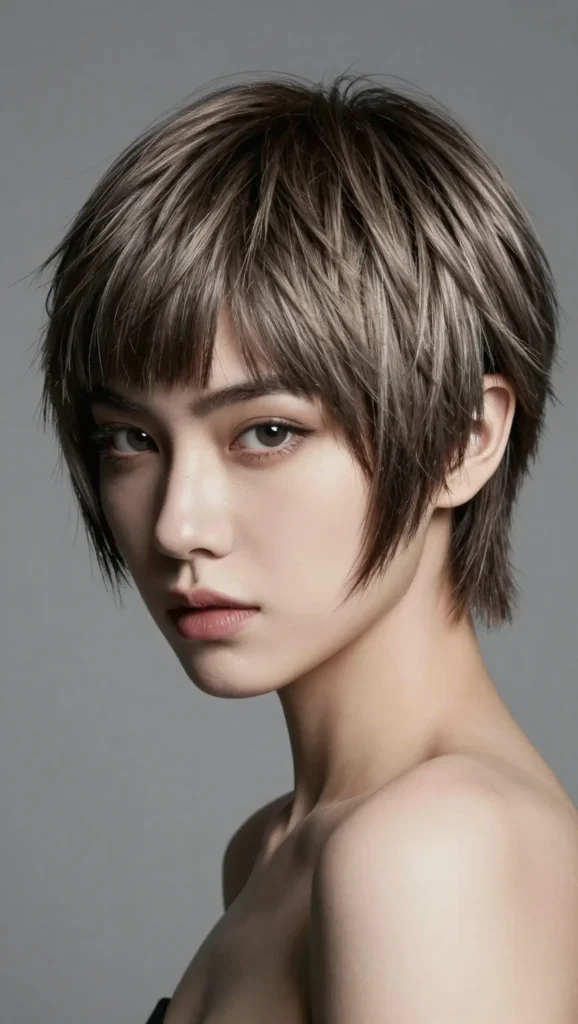 A modern blend of shag and mullet with bold layering.