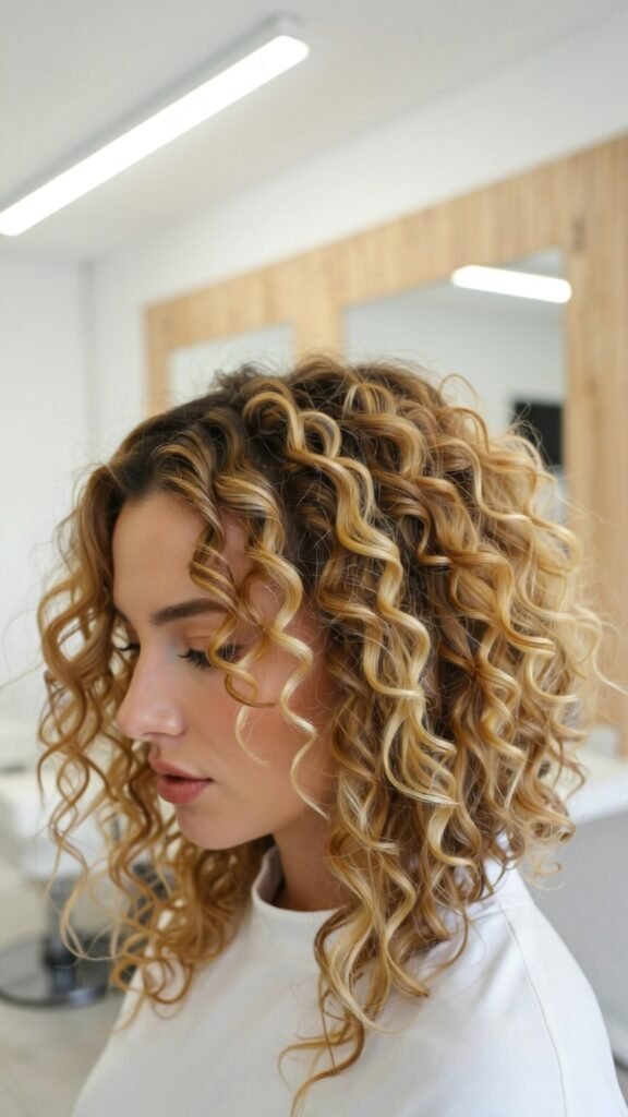Balayage is one of the most popular ways to add honey blonde to curly hair. The hand-painted highlights blend seamlessly with natural roots, keeping curls healthy and vibrant.