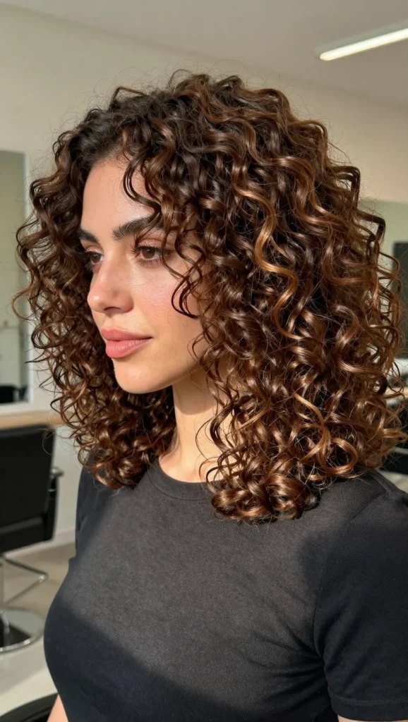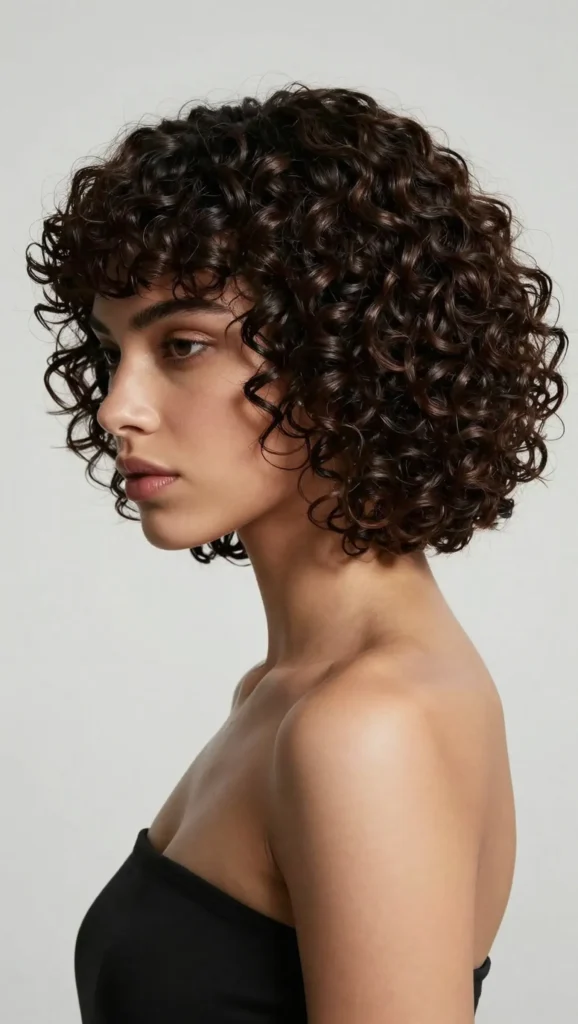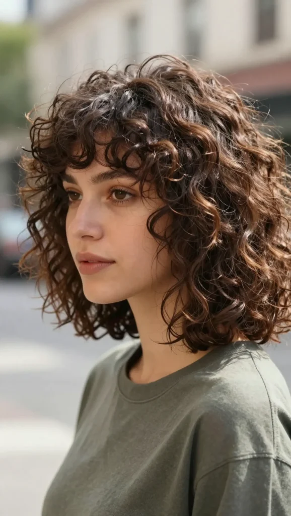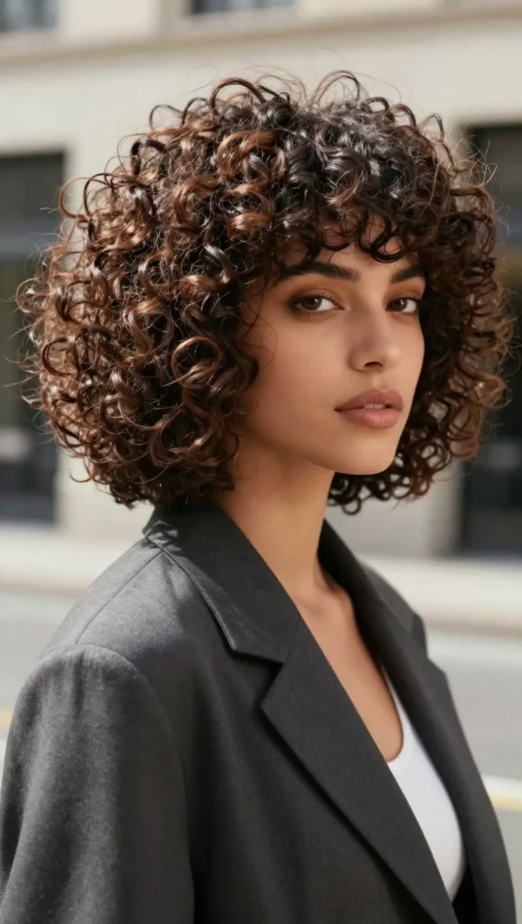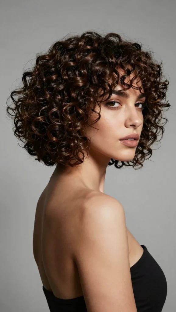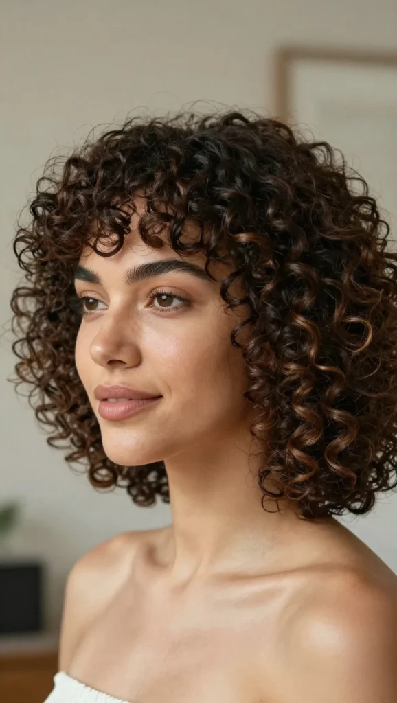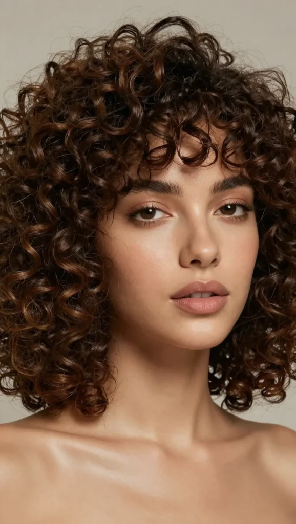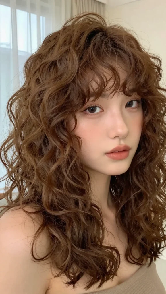 Curly bangs are becoming increasingly popular. Long curly hair with bangs creates a fun, youthful, and natural look.