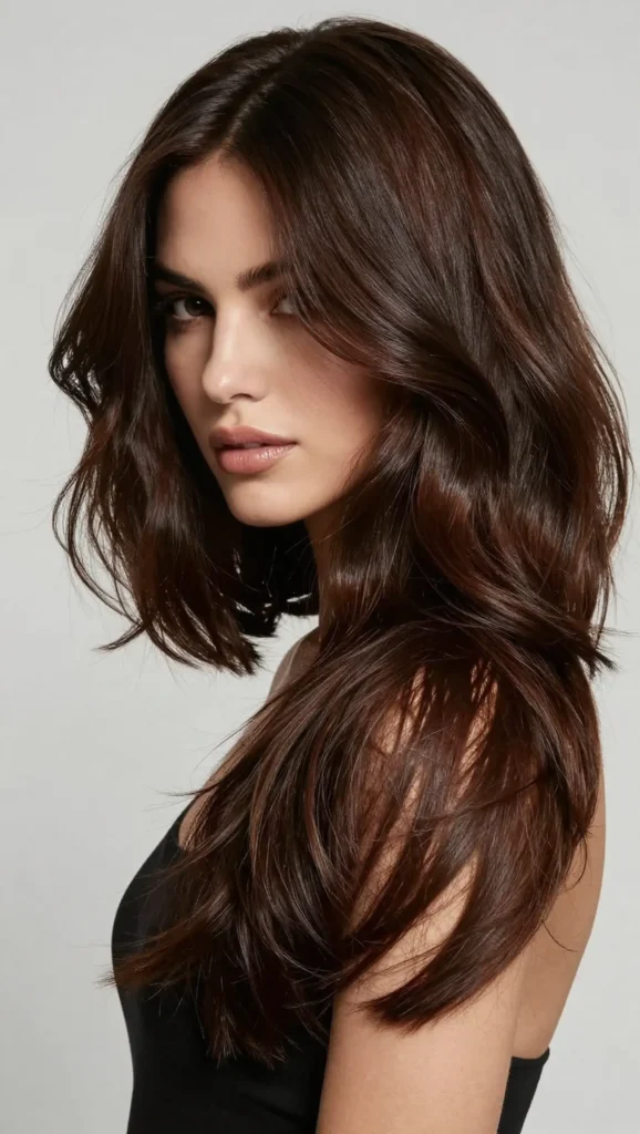 A layered lob combines layers with a medium-length bob. It’s modern and stylish.