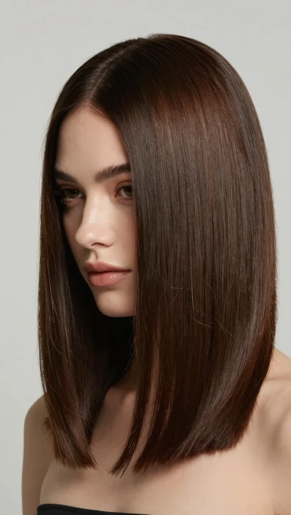 Straight medium-length hair looks sleek and professional.