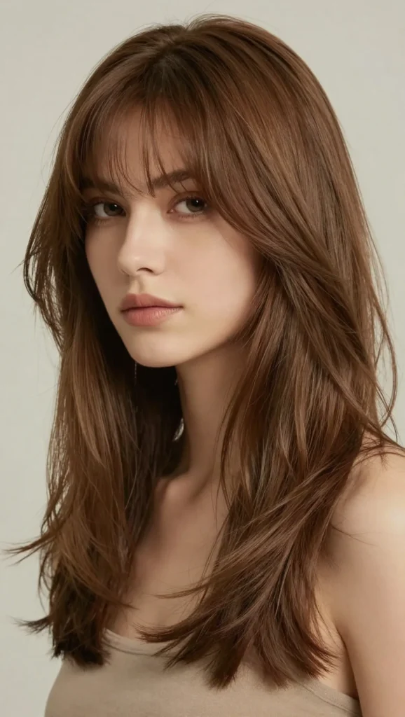 Wispy bangs add softness and femininity to medium-length hair.