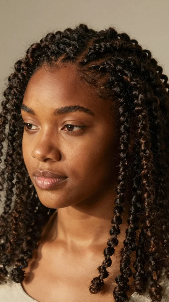 It’s a creative and protective way to style natural hair while keeping it secure and stylish.