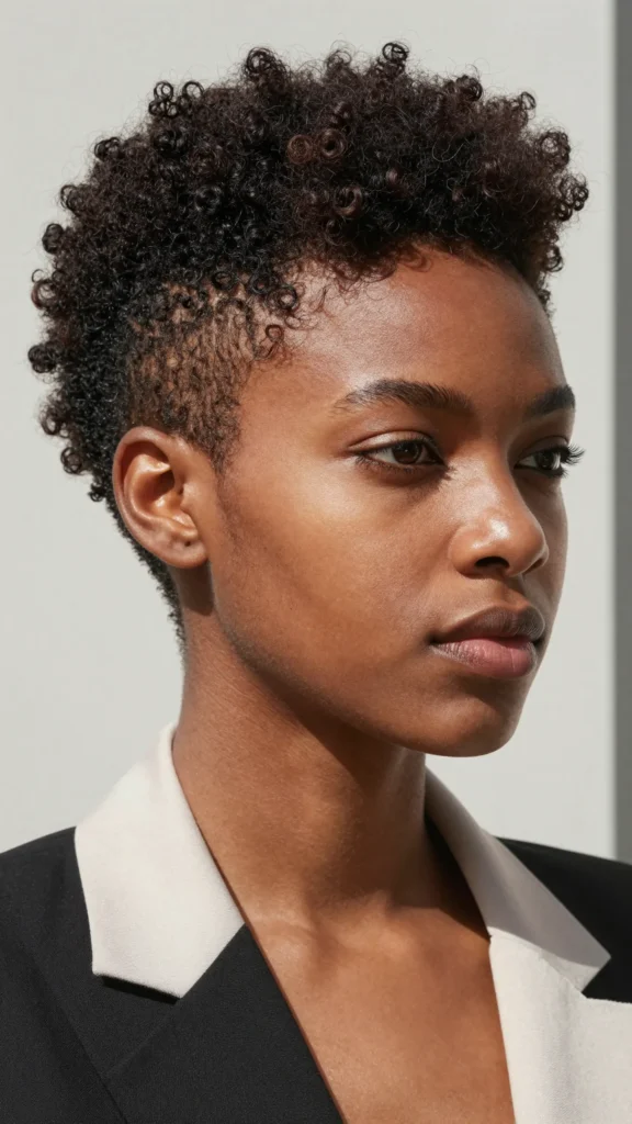 This modern natural hairstyle is easy to maintain and allows endless styling possibilities—from curls to coils.