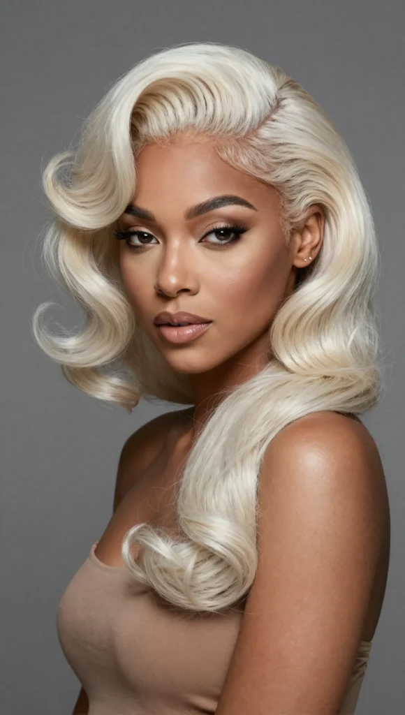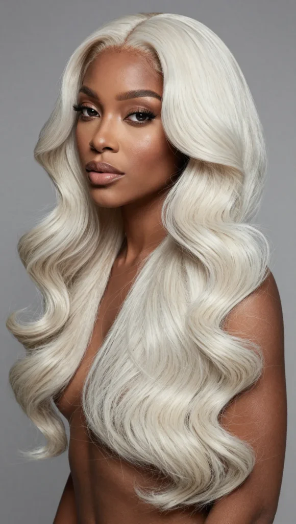 Soft waves add movement and dimension to platinum blonde hair, making it perfect for women who love glamour with minimal effort.