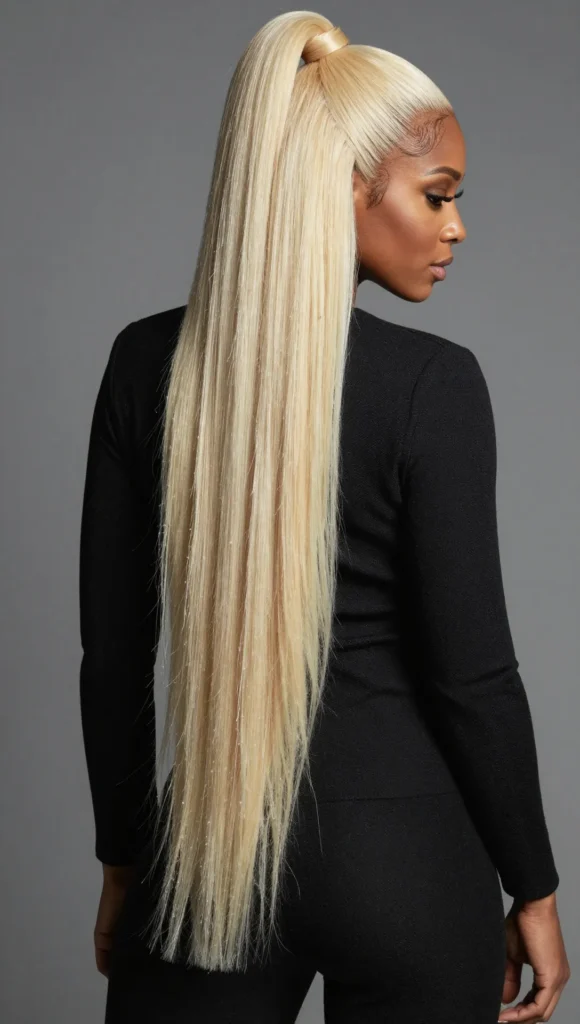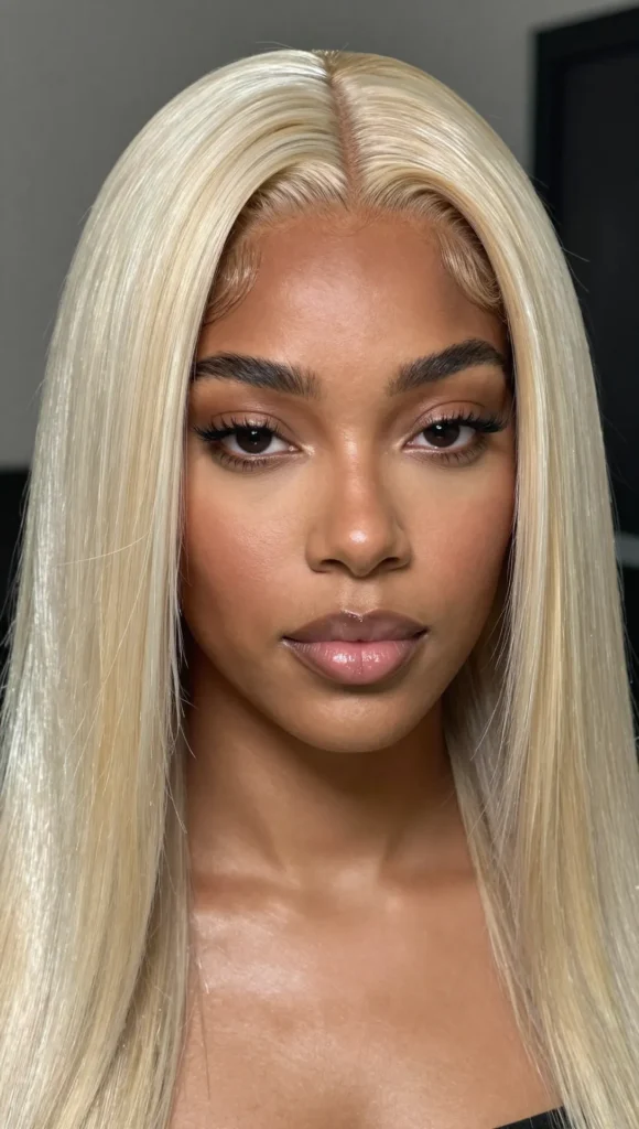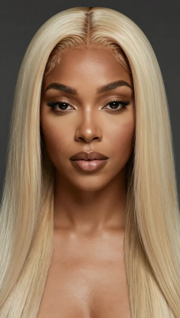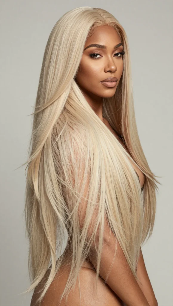 Long, straight platinum blonde hair is sleek, dramatic, and effortlessly glamorous.