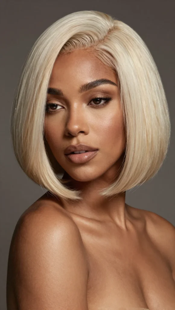 A sleek platinum blonde bob is timeless and elegant. This style frames the face beautifully and works well for both casual and professional settings.