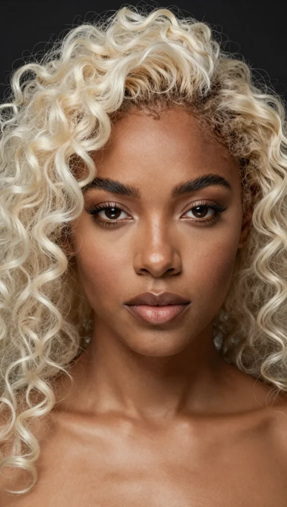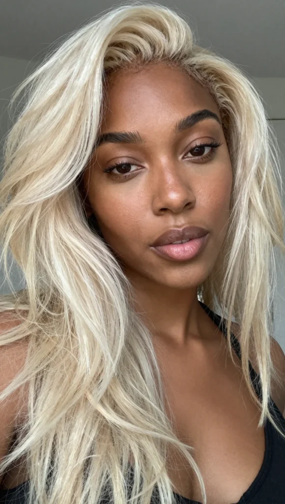 Platinum blonde creates a striking contrast against melanin-rich skin tones, enhancing natural beauty and highlighting facial features. From cool silver undertones to soft icy blondes, this shade complements a wide range of complexions and textures.