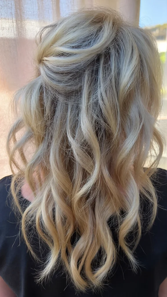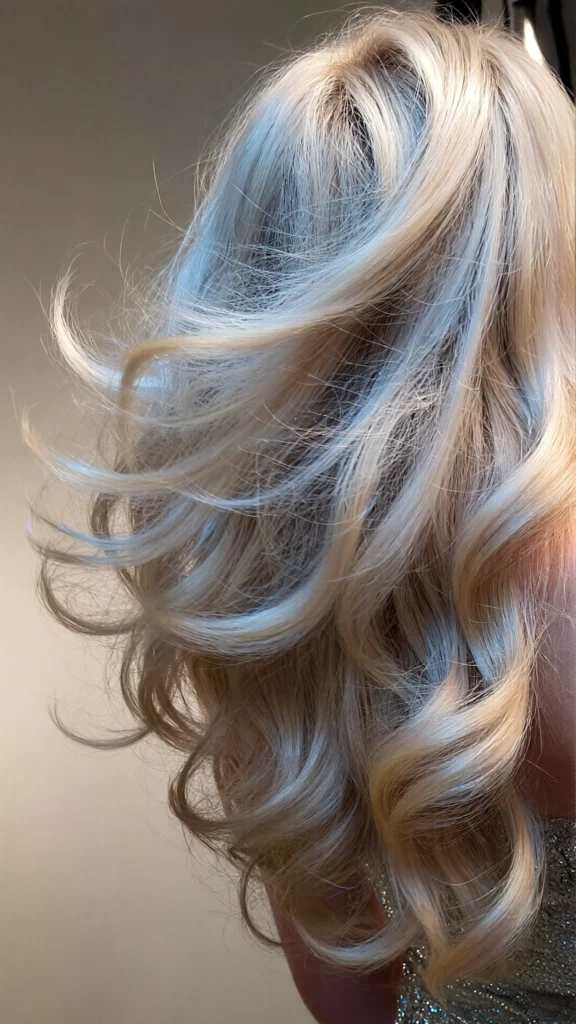 Loose waves paired with icy tones create a soft yet glamorous look.