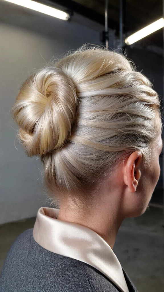 32. Platinum Blonde High Bun