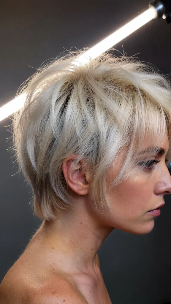 41. Platinum Blonde Layered Pixie