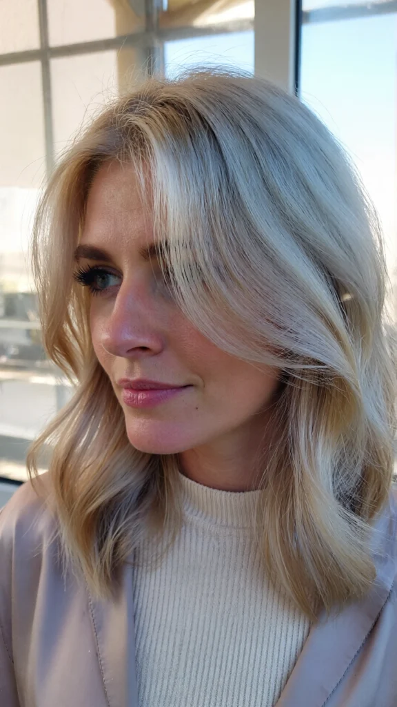 36. Platinum Blonde with Side Bangs