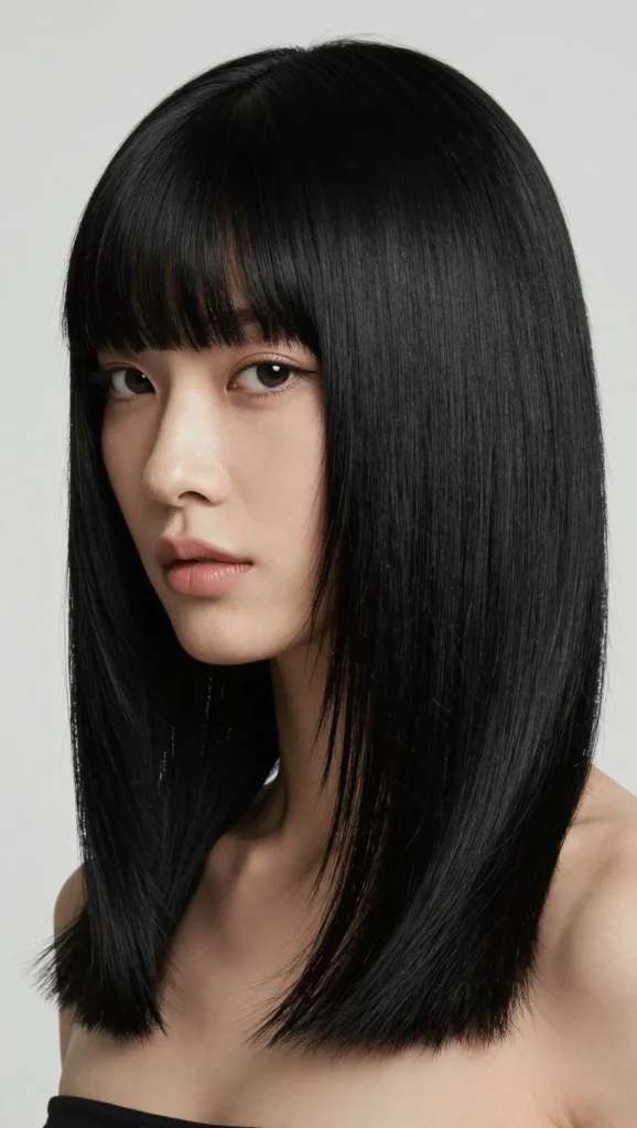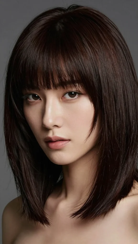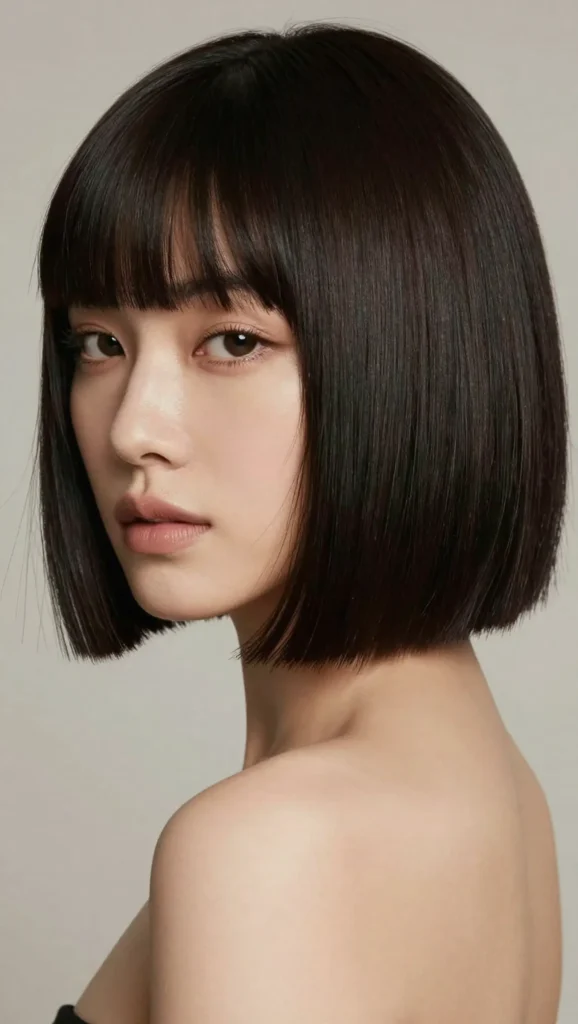 A blunt bob paired with soft side bangs is sleek and sophisticated. The blunt ends create structure, while side bangs add movement and softness.