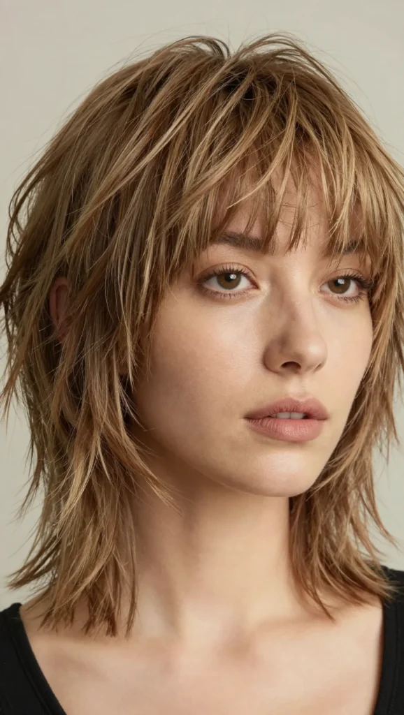 The choppy layers add texture and prevent the hairstyle from looking too heavy.