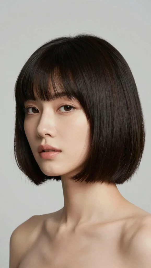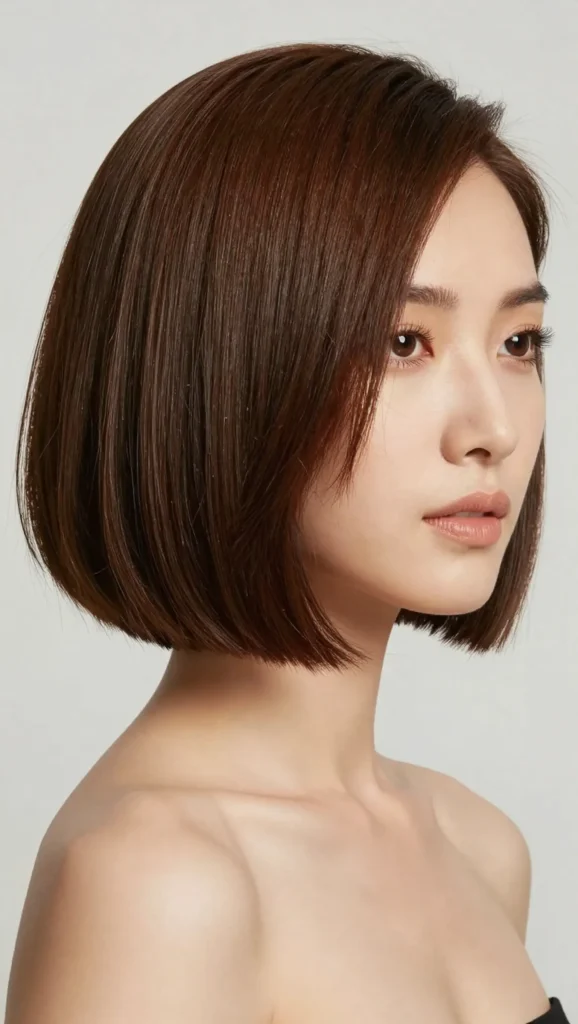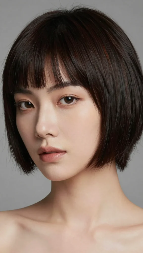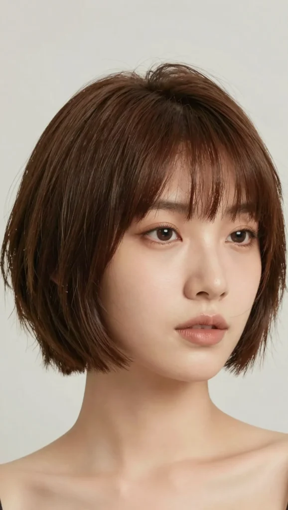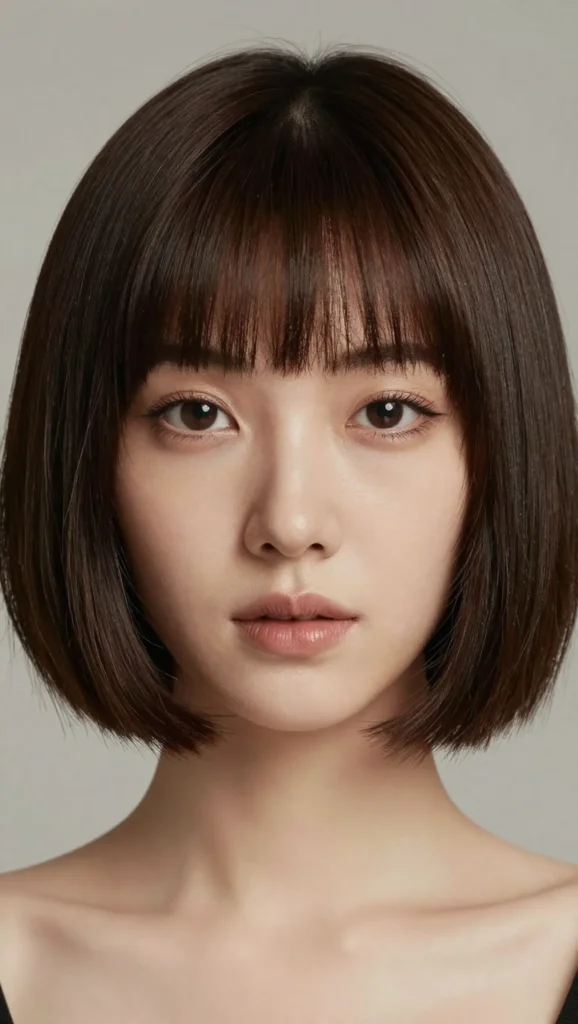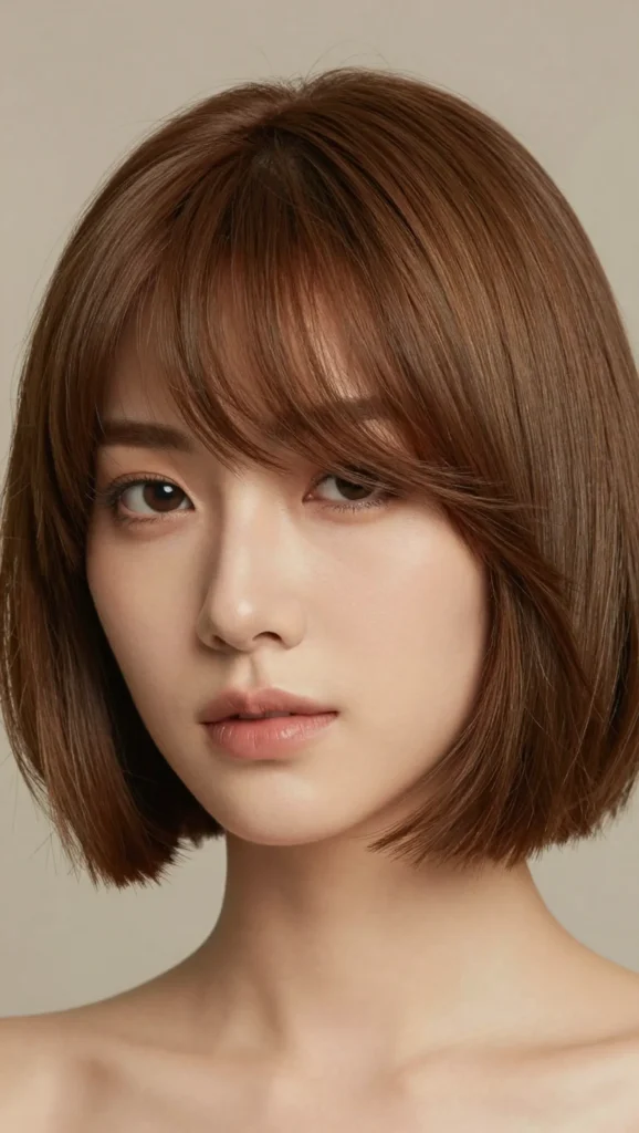 A blunt bob is often considered risky for round faces, but when paired with subtle texture and a slightly longer length, it becomes surprisingly flattering.