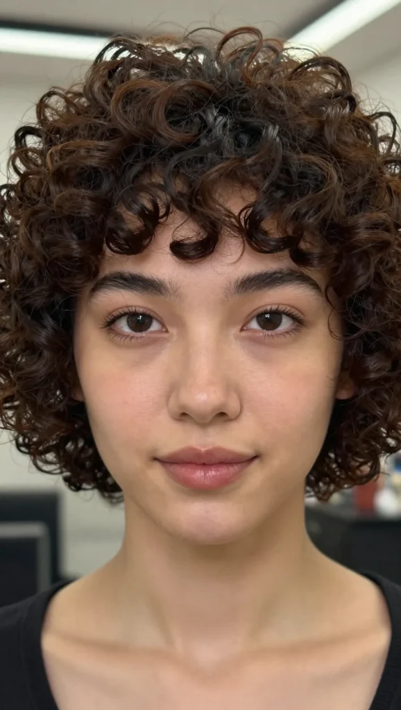 The most flattering short curly haircuts focus volume at the crown and keep the sides softly shaped. Avoid cutting curls too blunt around the cheeks, and instead allow longer face-framing pieces to soften the outline.