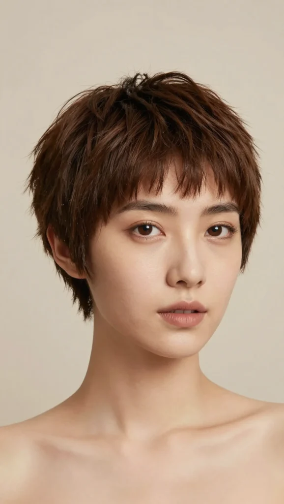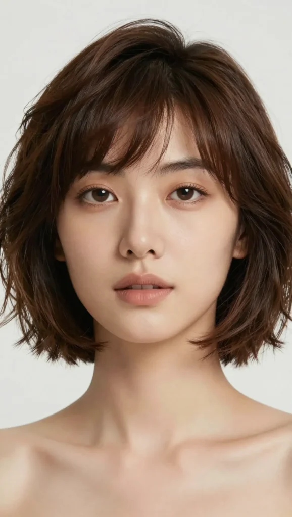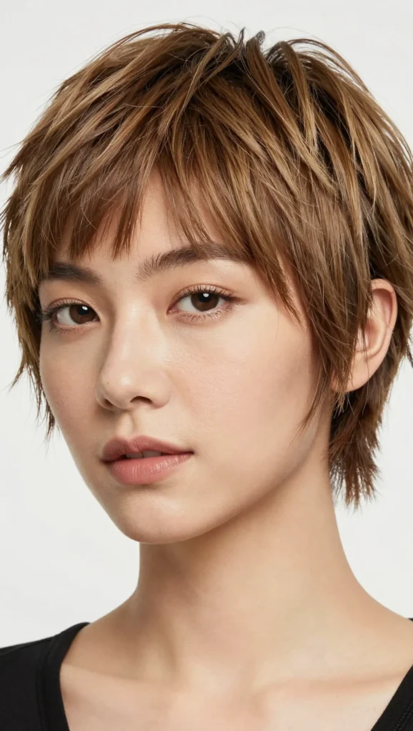 A short shag haircut is full of texture, movement, and personality. The layered crown creates lift, while the wispy ends frame the face gently instead of hugging the cheeks.