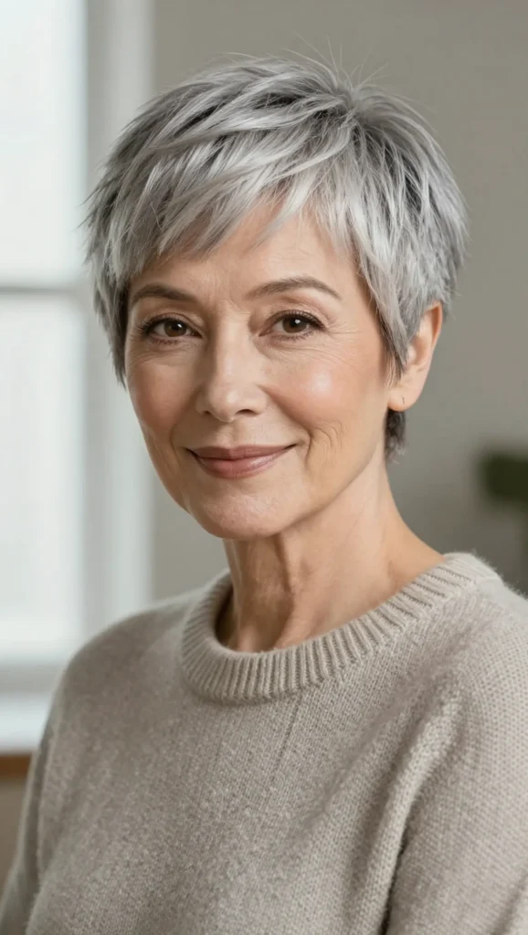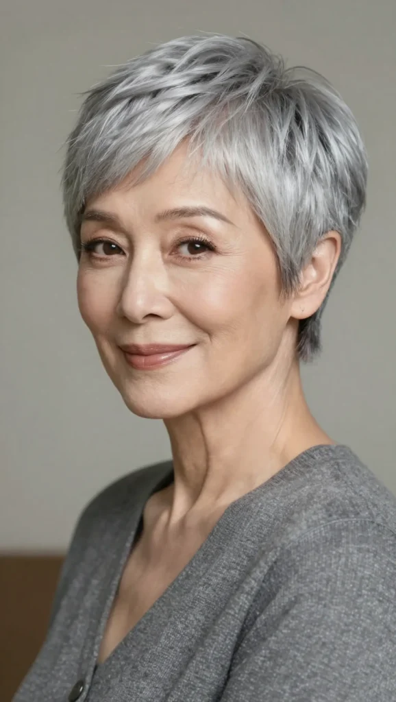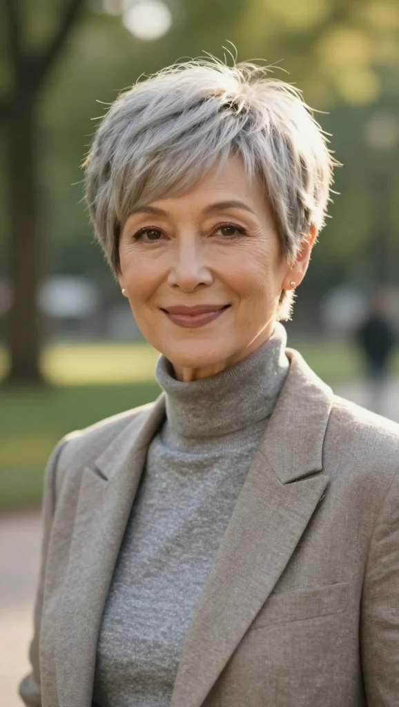The classic pixie cut is one of the most popular short hairstyles for women over 60. It’s timeless, elegant, and incredibly easy to maintain.